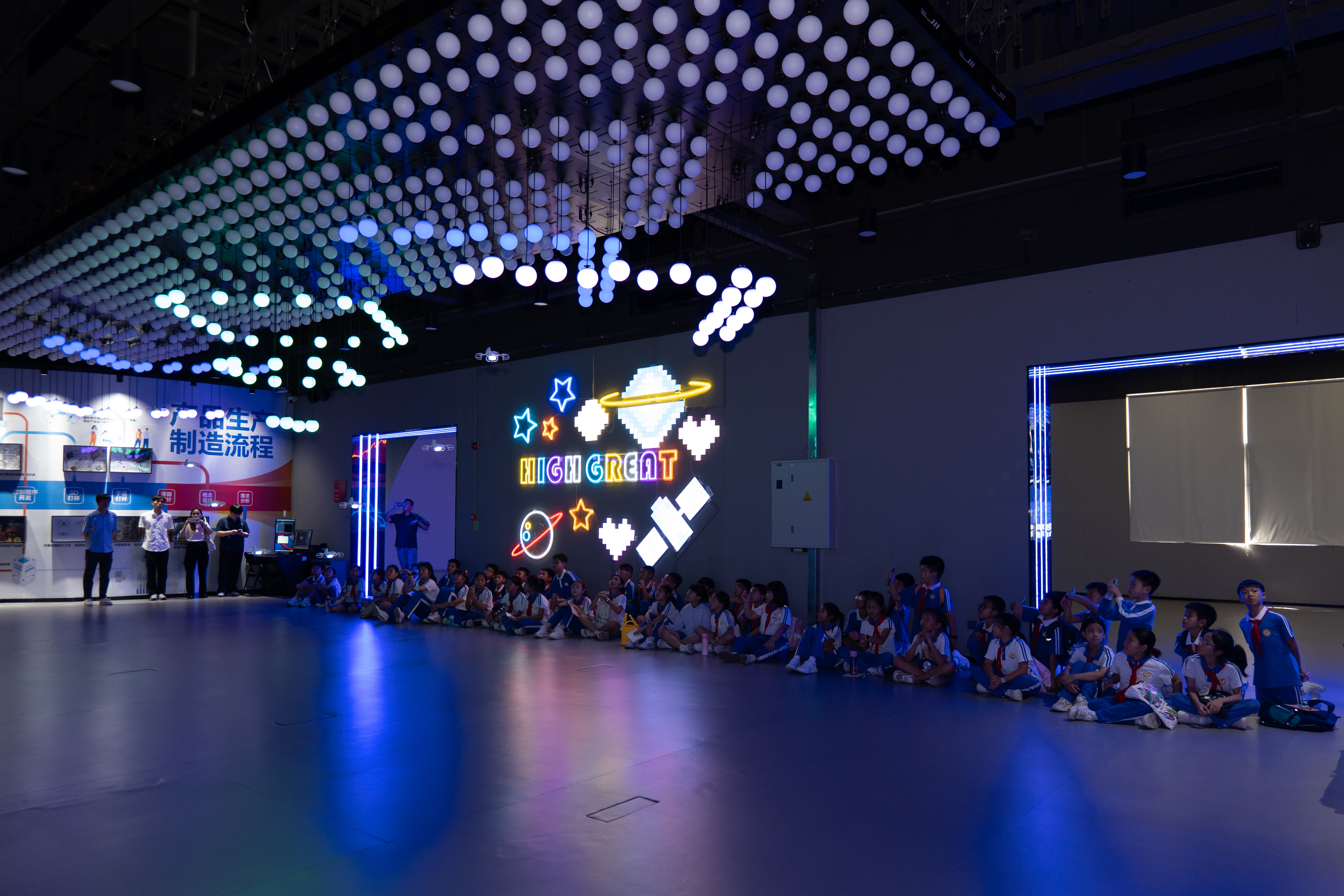 走进深圳高巨创新低空科教文旅基地,便能直观地看到集群控制如何编排一场空中表演: